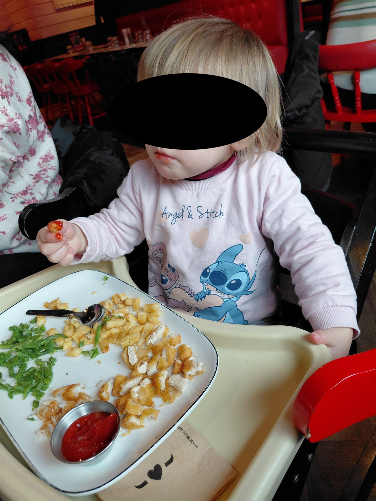 Mahé a 18 mois. S’asseoir sur une chaise haute dans un vrai restaurant, tenir une cuillère, boire dans un verre, attendre que le plat arrive : c’est un entraînement complet à la vie à table. Des gestes qui semblent simples mais qui demandent coordination, patience et concentration. Dans le cadre stimulant du restaurant, Mahé s’applique davantage qu’à la maison — parce que tout est nouveau, tout est important.